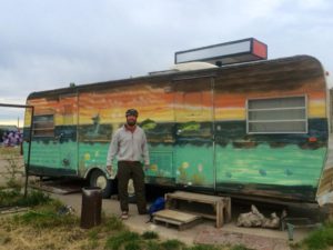 A hitch 20 miles over the wet pass the next day to beers at Lava Mt. Lodge and an inexpensive roof over my head. Next, 40-50 miles before being pinned down by lightning while crossing a field, finally figuring shivering more dangerous, bolting for a nice tent spot in the Shoshone National Forrest, and last night for brown bears (one thinks).